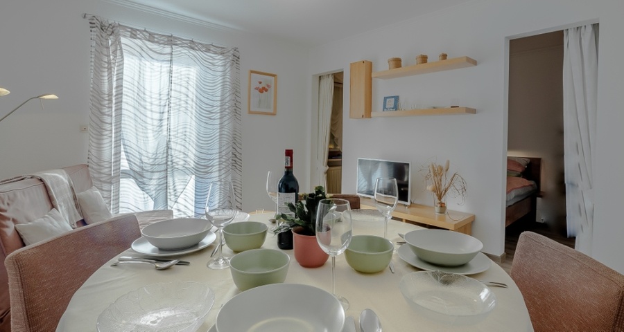 Ansicht Haus - Das Haus liegt in einer ruhigen, dennoch zentralen Wohngegend direkt am Waldrand. Zu Fuß in 5 Min. zu erreichen sind: das Zentrum, beheiztes Freibad, Minigolf, Restaurants, Supermarkt, Kirche und Bushaltestelle Esstisch im Wohnzimmer - Esstisch im Wohnzimmer - Wohnzimmer und Esstisch - Wohnzimmer mit TV Board - Wohnzimmer mit Blick ins Schlafzimmer - Schlafzimmer mit Doppelbett - Küche - Badezimmer - Badezimmer mit Wasch- und Duschbereich - Flur von der Eingangstür - Der Freisitz befindet sich direkt vor der Ferienwohnung und wird ausschließlich von unseren Gästen benutzt - Freisitz mit Blick zur Eingangstür - Freisitz mit Blick in die Landschaft - Belchen - Auf dem Wanderweg vom Belchen nach Schönau Knöpflesbrunnen - Wanderung vom Knöpflesbrunnen nach Schönau Gisibodenalm -