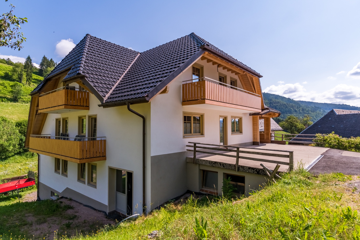 Außenansicht des Hauses Auerhahn mit Eingang zum Gastraum - Außenansicht von der Rückseite des Hauses  - Außenansicht des Hauses Auerhahn - Außenansicht des Anbaus mit den Ferienwohnungen -