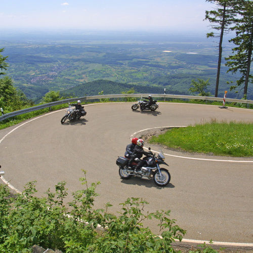 Viele Sonnentage pro Jahr, beeindruckende Pass- und Panoramastraßen und kristallklare Seen machen das Dreiländereck Schwarzwald, Schweiz und Frankreich zum perfekten Ziel für Ihren Motorrad-Urlaub. Denn die Schweiz und das Elsass sind nur einen Katzensprung entfernt. Ob eine kleine oder eine große Schwarzwald-Rundfahrt, eine Tour nach Colmar oder ein Ausflug an den Bodensee mit Abstecher in die Schweiz - wir geben Ihnen die besten Routenvorschläge für Ihren Motorrad-Aufenthalt.