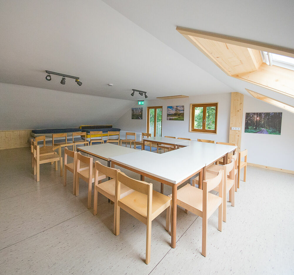 Vor Ort finden Sie in unserem Haus einen Seminarraum für etwa 20 bis 25 Personen vor. Das Balkonzimmer (ca. 10-15 Personen) steht Ihnen zudem für gemütliche Runden oder kleinere Gruppenprozesse zu Verfügung. Weiterhin können Sie auch im Essraum oder auf der Terrasse Ihre Seminare und Workshops durchführen. Eine Leinwand, Pinnwand und ein Flipchart stehen Ihnen für Ihre Seminare zu Verfügung.